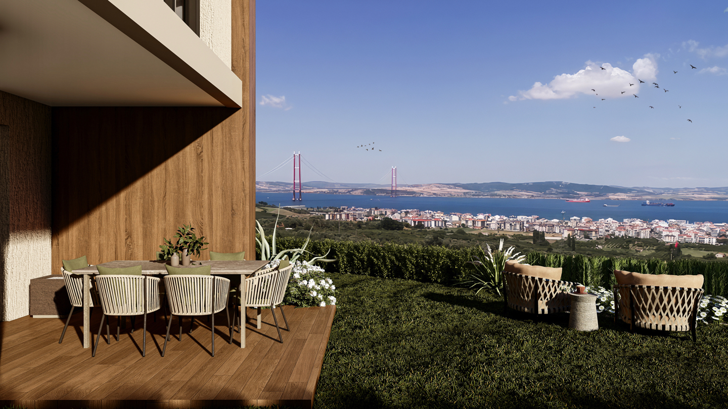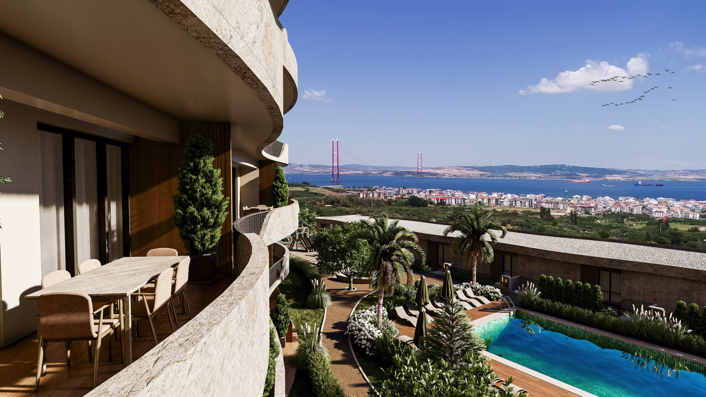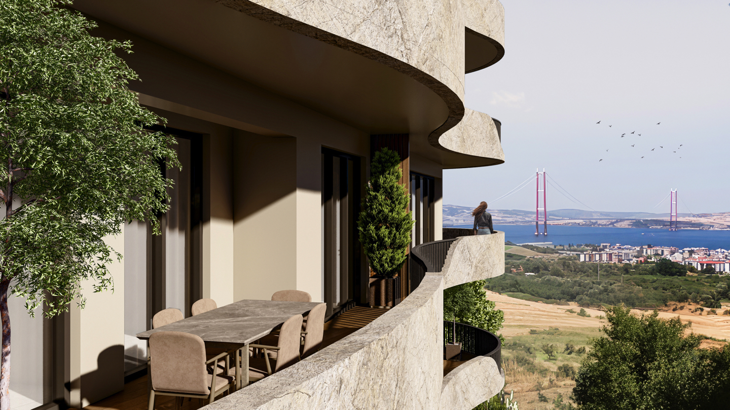 Projede yer alana konutlar, Çanakkale Boğazı'nın etkileyici manzarasını maksimum düzeyde iç mekana taşıyacak şekilde konumlanmıştır. Geniş cam yüzeyler, ferah balkonlar ve manzarayla uyumlu iç planlama sayesinde, boğaz manzarası evinizin doğal uzantısı haline gelir. Her gün doğayla iç içe, eşsiz bir görsel deneyimle başlar.